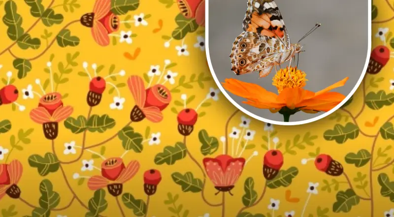На первый взгляд изображение выглядит как обычный цветочный узор. Но не стоит дать себя обмануть. Там точно где-то спрятана бабочка, просто заметить ее будет непросто.