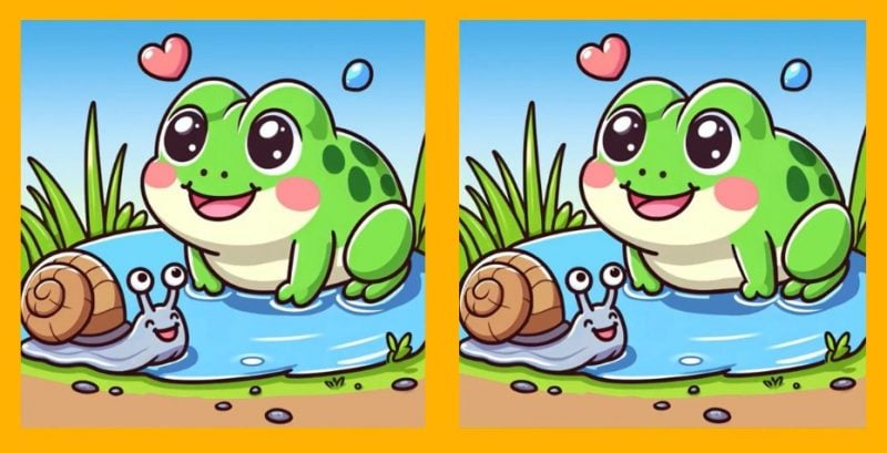 Итак, вы готовы к следующему заданию? Внимательно посмотрите на два изображения лягушки и улитки. На первый взгляд они могут показаться одинаковыми, но на них скрываются 3 небольших отличия. Думаете, сможете найти их все за 17 секунд? Попробуйте и проверьте свою остроту зрения!