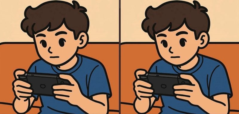 Итак, вы готовы к следующему заданию? Внимательно посмотрите на два изображения мальчика, играющего в видеоигры. На первый взгляд они могут показаться одинаковыми, но на них скрываются 3 небольших отличия. Думаете, сможете найти их все за 71 секунду? Попробуйте и проверьте свою остроту зрения!