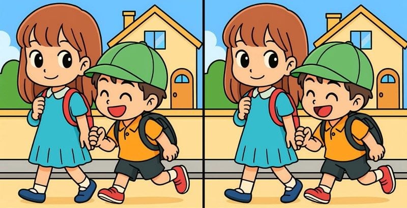 Итак, вы готовы к новому заданию? Внимательно посмотрите на два изображения мальчика и девочки, идущих в школу. Сперва картинки могут показаться одинаковыми, но на них скрываются 3 небольших отличия. Думаете, сможете найти их все за 59 секунд? Попробуйте и проверьте свою остроту зрения!