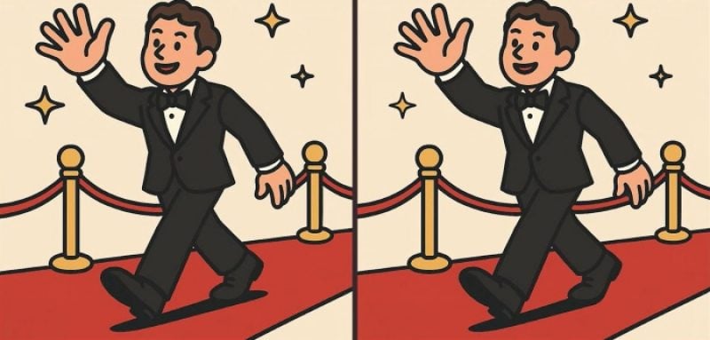 Итак, вы готовы к очередному заданию? Внимательно посмотрите на два изображения мужчины, который идет по красной ковровой дорожке. Сперва картинки могут показаться одинаковыми, но на них скрываются 3 небольших отличия. Думаете, сможете найти их все за 91 секунду? Попробуйте и проверьте свою остроту зрения!