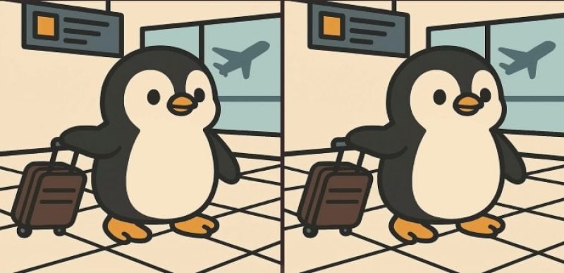 Итак, вы готовы к следующему заданию? Внимательно посмотрите на два изображения милого пингвина, несущего багаж в аэропорту. На первый взгляд они могут показаться одинаковыми, но на них скрываются 3 небольших отличия. Думаете, сможете найти их все за 61 секунду? Попробуйте и проверьте свою остроту зрения!