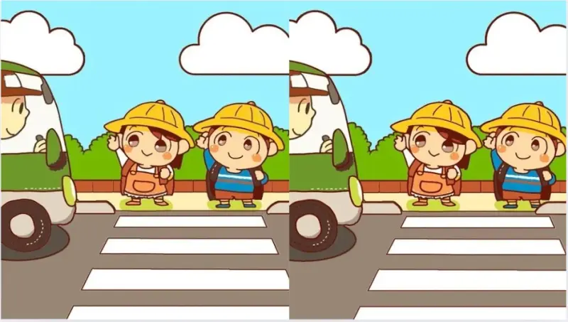 Итак, вы готовы к следующему испытанию? Взгляните на две картинки с детьми, которые ожидают школьный автобус. На первый взгляд, обе картинки кажутся одинаковыми. Но на них есть 3 отличия, и задача - найти их за 29 секунд.