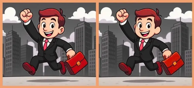 Приготовьтесь проверить свою память и внимание к деталям в очередном задании "Найдите отличия". Вы видите два одинаковых изображения жизнерадостного офисного сотрудника с портфелем. На первый взгляд, эти два изображения кажутся похожими, но это не так. Между двумя картинками есть три отличия, и только самые внимательные глаза смогут найти их за 29 секунд.