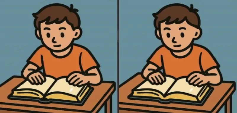 Взгляните на две картинки мальчика, который читает книгу. На первый взгляд картинки кажутся одинаковыми, но присмотритесь внимательнее. На них скрываются 3 крошечных отличия. Думаете, сможете найти их все всего за 49 секунд? Давайте проверим, насколько вы зорки!