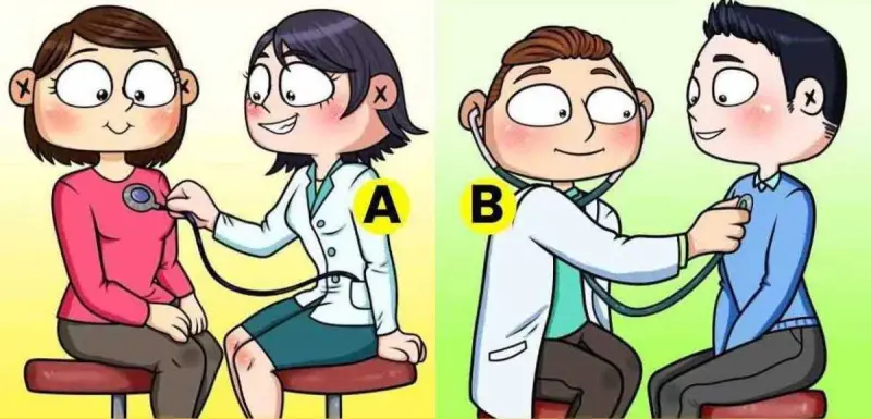 На представленной картинке изображены два врача, а именно A и B, лечащие пациентов. Один из них фальшивый. Сможете ли вы выявить фальшивого врача за 5 секунд?