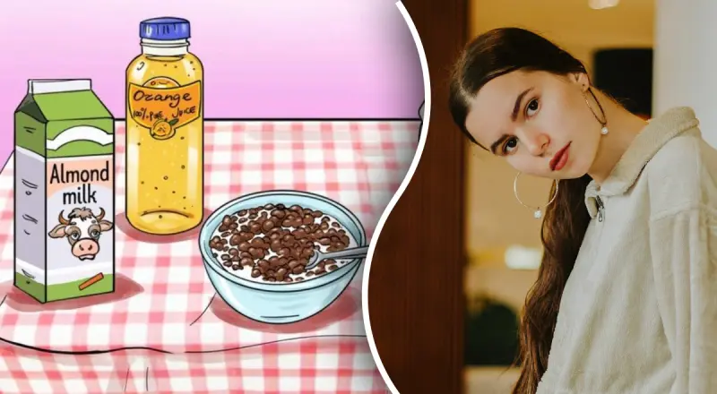 На картинке мы видим миску хлопьев, залитых молоком, соблазнительное шоколадное печенье, бутылку освежающего апельсинового сока и упаковку полезного миндального молока. На первый взгляд, никакой ошибки на рисунке нет. Но это именно тот случай, когда не стоит доверять своему первому впечатлению.