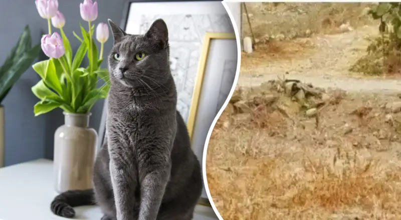 В следующей загадке нужно отыскать котика, который спрятался на улице, пишет The Sun. Животное устроило себе тайник среди травы, камней и песка.