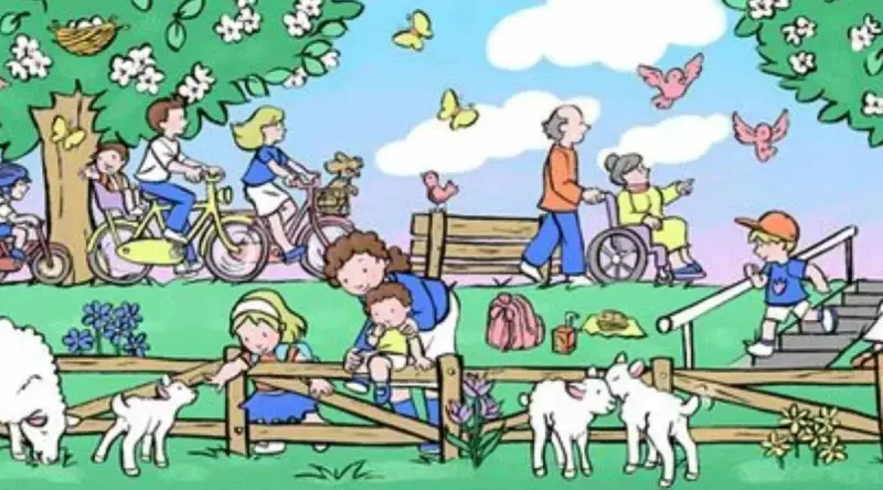 На картинке мы видим парк, в котором проводит время много людей. Некоторые катаются на велосипедах, кто-то просто прогуливается, а кто-то играет с овечками и ягнятами. Где-то среди этой весенней идиллии спрятаны три яйца, которые нужно отыскать максимально быстро.