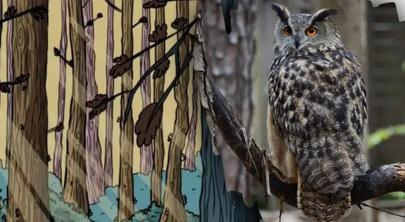 На первый взгляд кажется, что в таком пустом лесном пейзаже нет ни одной живой души, но на самом деле это не так. Где-то между деревьями спряталась сова, которая старается быть незаметной. Проверьте, удастся ли вам перехитрить птичку и найти ее тайник.
