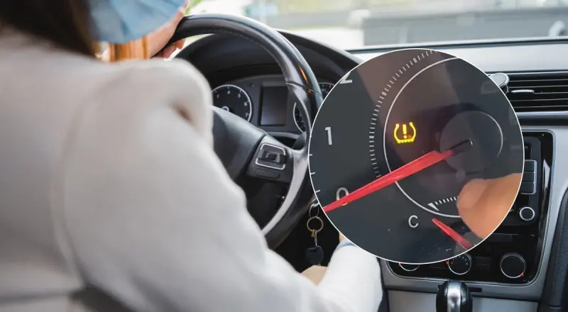 Этот знак указывает на различные проблемы с шинами и призывает водителей немедленно проверить давление в шинах.