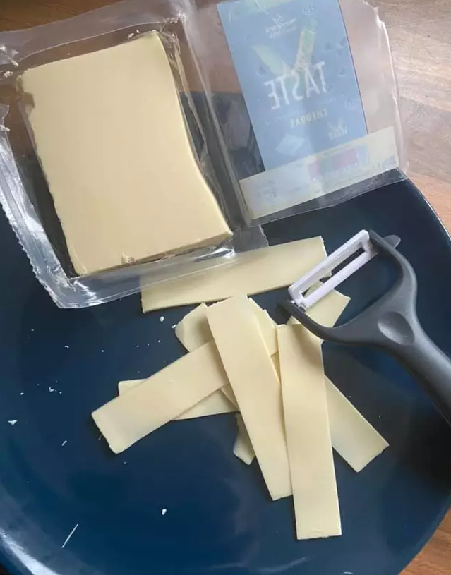 Одна женщина показала, как невероятно легко получить идеальный ломтик сыра каждый раз, используя картофелечистку.