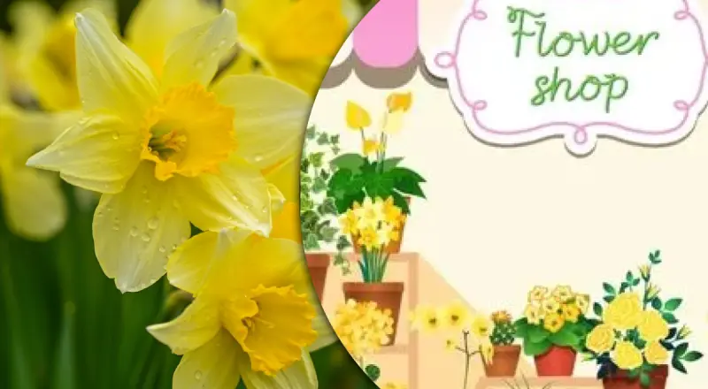 Поскольку все цветы в магазине одного цвета, то вашему мозгу и глазам придется напрячься, чтобы найти нарциссы.