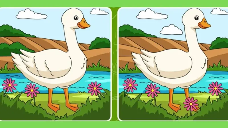 На двух одинаковых на первых взгляд картинках мы видим нарисованных гусей, которые стоят у водоема с водой. Кажется, что между рисунками вообще нет никакой разницы – но на самом деле это не так. Есть некоторые признаки, по которым они отличаются. Сможете ли вы эти признаки заметить?