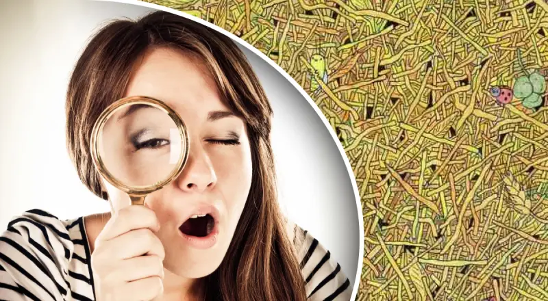 В следующей загадке нужно будет отыскать иголку в стоге сена - в прямом смысле слова. Сложную загадку создал венгерский художник Гергей Дудаш (Gergely Dudás).