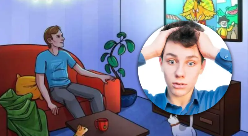 Один из примеров подобного упражнения - изображение гостиной, где юноша проводит время перед телевизором в компании двух котов. Но внимательному зрителю нужно заметить одну очевидную ошибку, причем всего за 5 секунд.