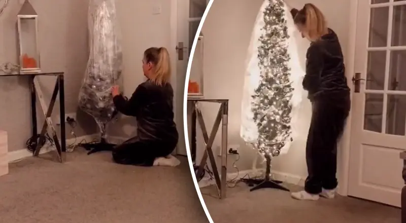 Женщина рассказала, что в конце праздников она оборачивает свою украшенную рождественскую елку пищевой пленкой.