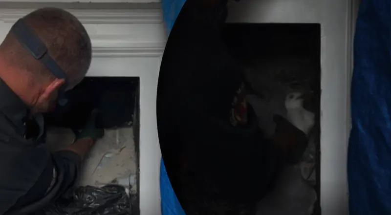 Сначала 48-летний трубочист подумал, что за опавшими перьями может скрываться мертвое животное. Он также считал, что это результат недавней непогоды, поскольку жительница не слышала никакого движения из дымохода.