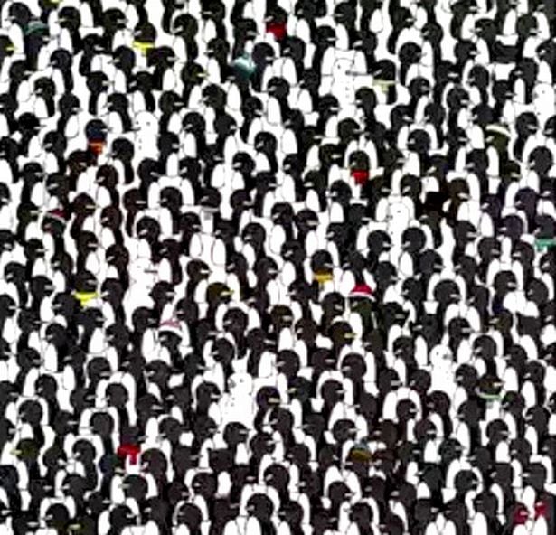 На изображении – множество пингвинов и снеговиков. Некоторые из них даже в шапках и шарфиках разного цвета, чтобы еще сильнее вас запутать.