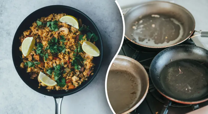 После этого нужно хорошо вымыть сковородку, чтобы на ней не осталось использованного средства.