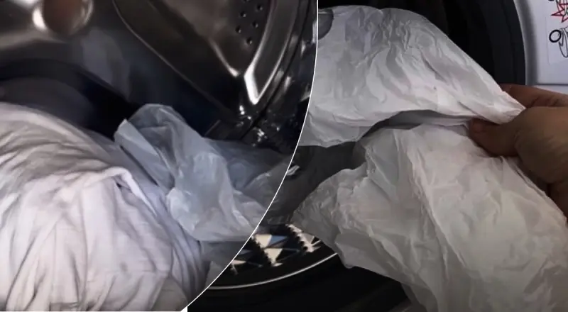 Маленькая хитрость очень проста: перед началом цикла стирки засуньте в барабан прозрачный полиэтиленовый пакет прямо посередине одежды. Подойдет любой, даже тот, который вы используете для покупок. В видео, размещенном на YouTube-канале Simple & Fast рассказывается о том, для чего кладут полиэтиленовый пакет в стиральную машину.