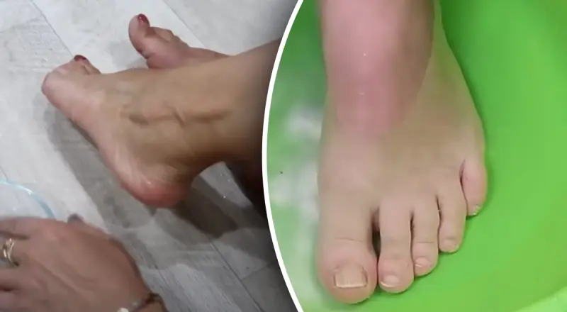 Погрузите ноги в получившуюся ванночку на 15-20 минут. Это поможет смягчить огрубевшую кожу.