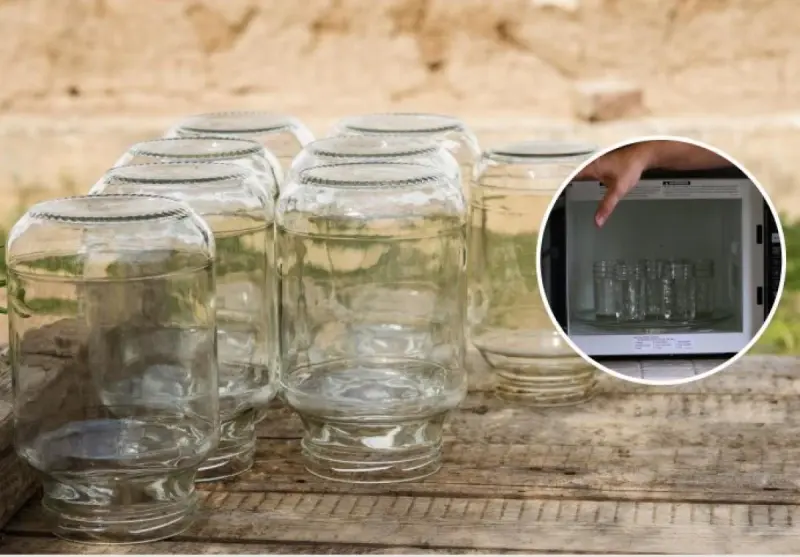 Такой метод называется сухим методом условно – вода все же будет, но не в самих банках, а в стакане, который нужно поместить в центр микроволновки.