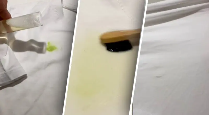 Говоря о том, как он это сделал, автор видео объяснил: "Если вы смешаете пищевую соду со свежим лимонным соком, добавите немного белого уксуса, немного средства для мытья посуды и воды, хорошо встряхните. Так можно вывести любые пятна с одежды. Просто нанесите смесь на пятно, возьмите зубную щетку и очистите ее. Это безопасно, натурально, без токсичных химикатов, и работает как по волшебству".