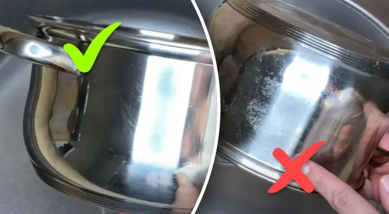 Для удаления пятен и следов, вызванных пищей, вам помогут обычные домашние ингредиенты. Уксус, смешанный с водой в равных пропорциях, помогает снять загрязнения и восстановить блеск нержавеющей стали. Промойте посуду чистой водой и полотенцем, чтобы избежать разводов.