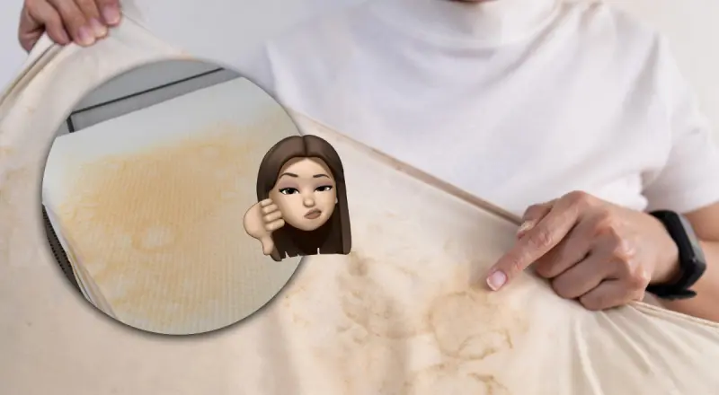 Отмечается, что одним из виновников появления пятен на матрасе является пот, поскольку он содержит белки, которые связываются с тканью, и со временем она желтеет.