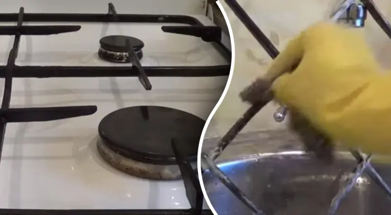 Автор YouTube-канала "Ваш порадник" рассказала, как очистить решетку газовой плиты содой.