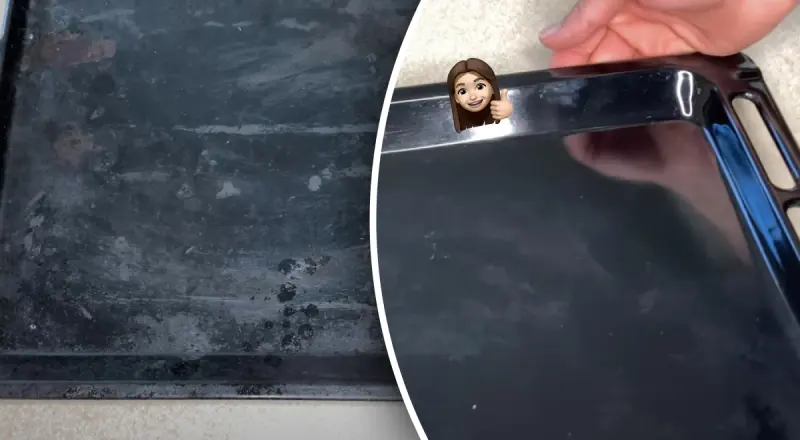 Оставьте на час, а затем протрите противень стальной ватой или губкой. Все остатки пригоревшей пищи исчезнут, и ваш противень снова будет выглядеть как новый.