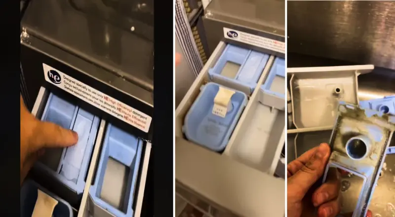 Минди, 44 года, в своем Tik Tok сказала: "Вы когда-нибудь задумывались, для чего нужна кнопка на корпусе вашей стиральной машины? Вот ответ". Демонстрируя, что нужно делать, она добавила: "проверьте это - Нажмите эту кнопку, и лоток должен полностью выдвинуться, поместите его сюда [в раковину], а затем потрите его с мылом, чтобы избавиться от остатков плесени и отложений".