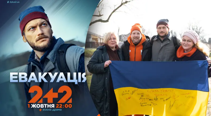 1 октября, в День защитников и защитниц Украины, в 22:00 на телеканале 2+2 состоится премьерный показ четырехсерийной военной драмы "Эвакуация". Сериал снят при поддержке государства. Это история об учителе информатики из Польши Марюсе, который отправляется на поиски и спасение своей 12-летней дочери Марии из оккупированного российской армией Мариуполя.
