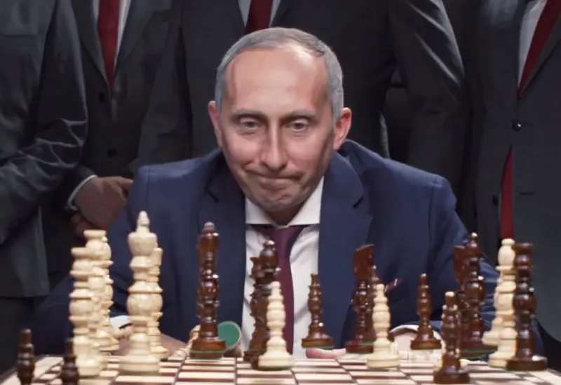 После этого у Путина начинается истерика, президент РФ сносит все фигуры с шахматной доски.