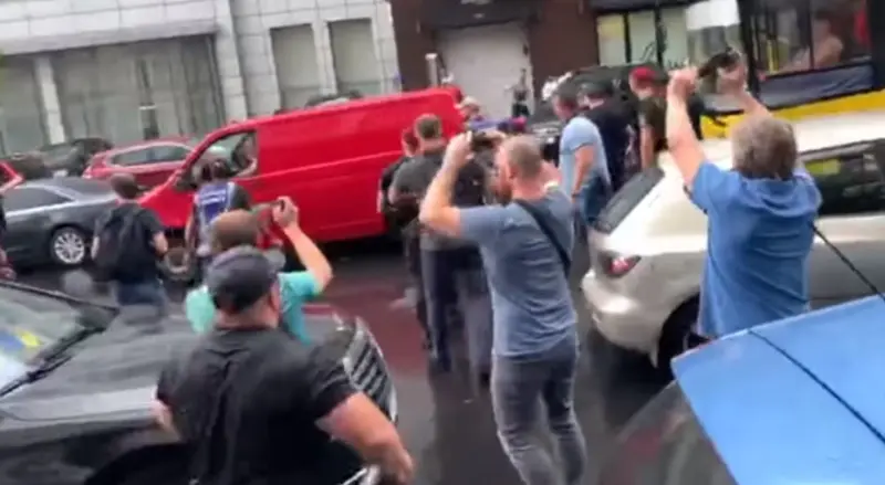 Охране экс-президента пришлось вступить в противостояние с агрессивно настроенными неизвестными и даже применить баллончики со слезоточивым газом.