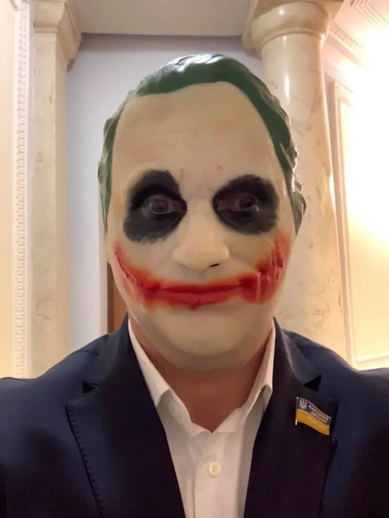 Народный депутат от ОПЗЖ Илья Кива, который ранее в Раде положил руки возле пениса, явился на заседание парламента в маске Джокера и захватил внимание коллег.