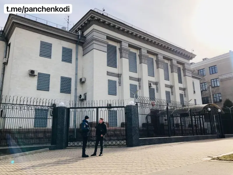 Российская Федерация начала эвакуацию сотрудников дипломатических представительств в Украине. Со здания посольства России в Киеве уже сняли российский флаг.