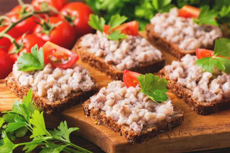 Невероятный селедочный паштет станет настоящим изысканным вкусом для всех. Подавать закуску из селедки можно с черным или белым хлебом. Также вкусно будет завернуть селедочный паштет в блинчики.