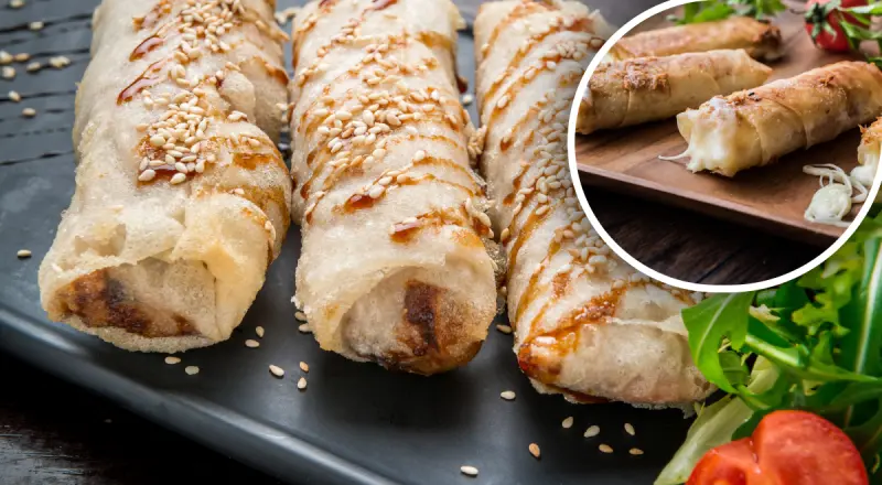 Обжариваем наши трубочки на сковороде со всех сторон по 2 минуты и подает хрустящими к столу.