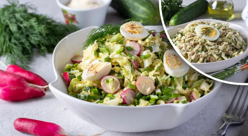 Подаем к столу вкуснейший и легкий салат из пекинской капусты.