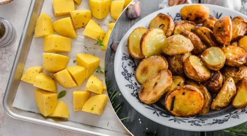 Манка обладает способностью впитывать лишнюю влагу, благодаря чему кусочки картофеля лучше подрумяниваются в духовке. Именно влага обычно мешает образованию хрустящей корочки, превращая запекание в своеобразное тушение.