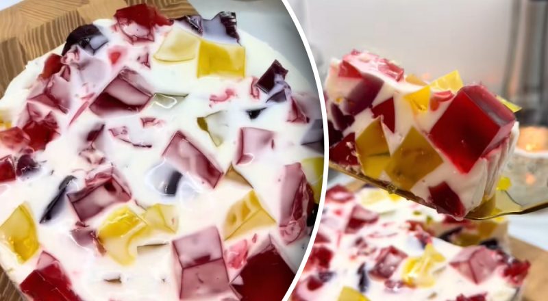 @gotuyemo_v_kayf Яркий, вкусный десерт Битое стекло ? Сохраняй, чтобы не потерять ? Ингредиенты: Желе разноцветное - 3 шт Сметана 15% - 300 г Желатин - 15 г Вода - 75 мл Сахар - 3 ст.л Ванильный сахар - 1 пачка Приготовление: Сделать желе разных цветов, остудить, нарезать кубиками. Желатин залить холодной водой, дать набухнуть, растворить. Сметану смешать с сахаром, ванильным сахаром, влить теплый желатин. В форму, застеленную пищевой пленкой, выложить кубики желе, затем залить сметаной. И так каждый слой желе, затем сметана. Отправить в холодильник на 4 часа или на ночь. Приятного аппетита ❤️ #десерт#битескло#рецепты#рецепт#желе♬ CHANEL - Tyla
