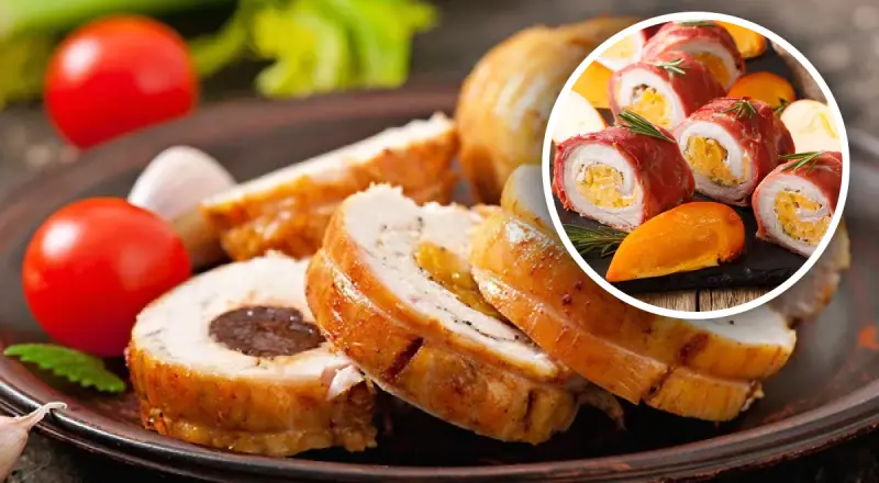 Смотрите видео, как готовить куриный рулет с начинкой: