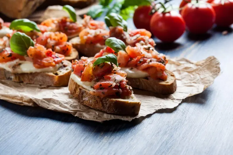 Подавать сразу хрустящие брускетты к столу.