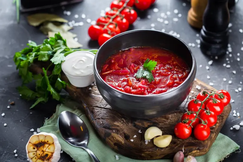 Чтобы облегчить вам приготовление украинского борща сразу расскажем, что секретными ингредиентами являются - лимонный сок и уксус.