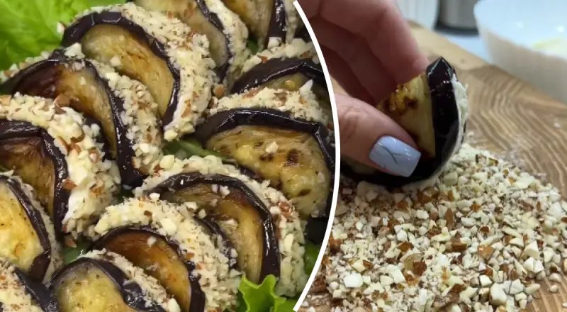 @gotuyemo_v_kayf Вкусная закуска из баклажанов ? Сохраняй, чтобы потом не искать! Ингредиенты: Баклажан - 1 шт Крем-сыр - 50 г Твердый сыр - 80 г Чеснок - 3 зубчика Орехи, соль,перец по вкусу. ▫️Баклажан помыть, нарезать на кусочки толщиной примерно 5 мм. Посыпать солью и обжарить с обеих сторон до золотистого цвета. ▫️До натертого сыра добавить крем - сыр и чеснок, посолить и поперчить перемешать. ▫️На кружочки баклажанов выложить начинку и украсить орешками. Приятного ❤️ #закуска#баклажаны#закусказбаклажанів#рецепт#рецепты#готуємовкайф♬ original sound - 80s throwback hits