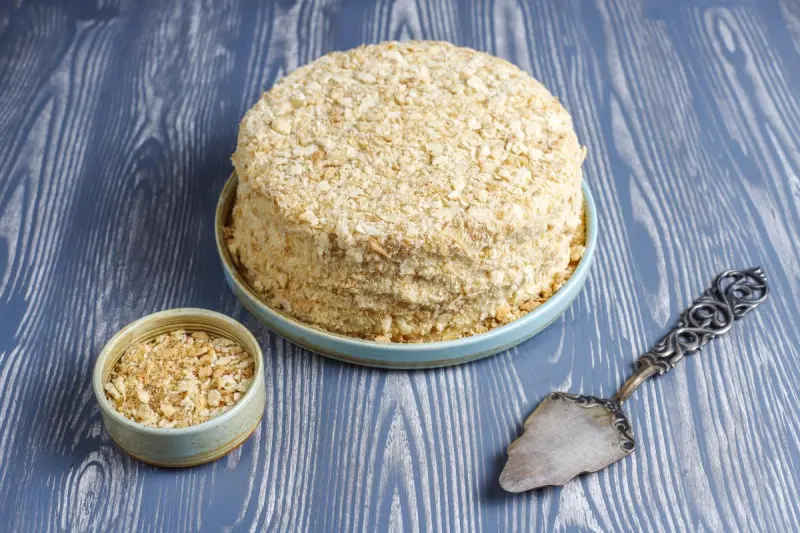 Тесто на Наполеон раскатывать или присыпать мукой категорически нельзя.