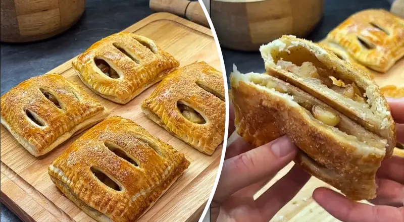 Смотрите, как приготовить слойку с яблоками из слоеного теста: