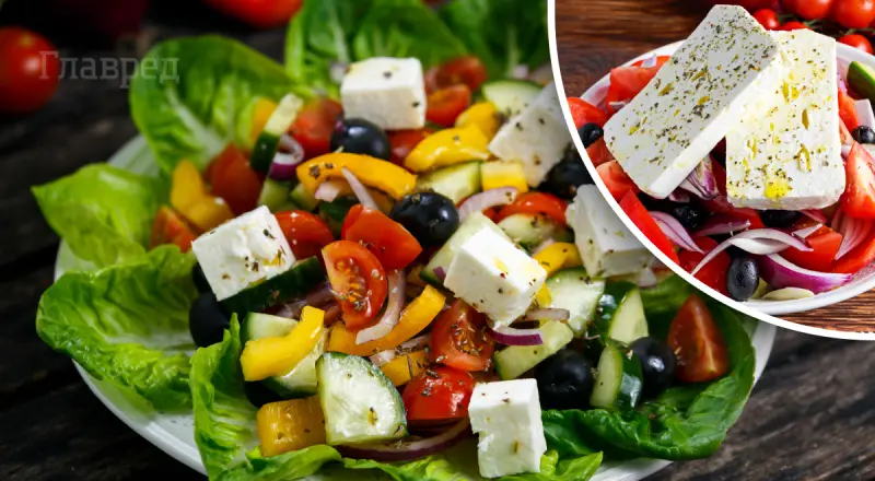 Вкусный греческий салат По-деревенски готов.